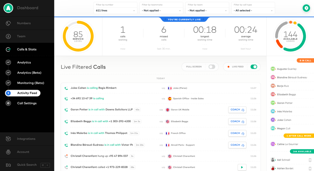 Aircall es una solución de telefonía en la nube diseñada específicamente para equipos de ventas y soporte. Su integración con más de 80 aplicaciones, facilidad de configuración y funciones de analítica en tiempo real la hacen una opción popular para empresas que buscan mejorar la eficiencia de su call center.