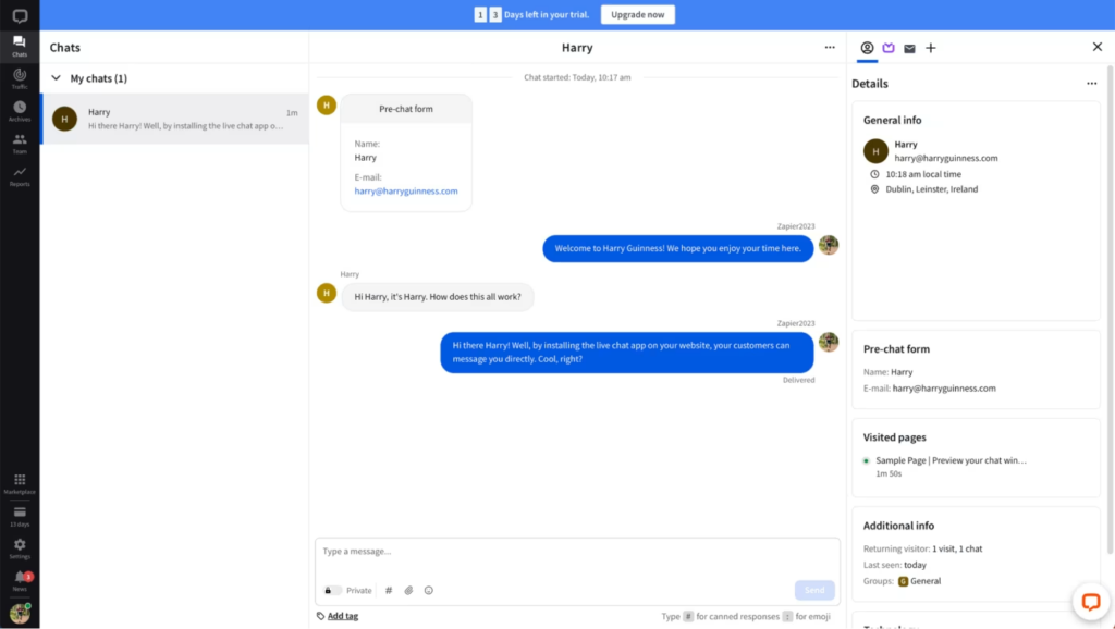 Integraciones con múltiples herramientas: LiveChat es compatible con una amplia gama de herramientas, incluyendo CRM, plataformas de marketing por correo electrónico y sistemas de gestión de proyectos, lo que facilita la integración en tus flujos de trabajo existentes.