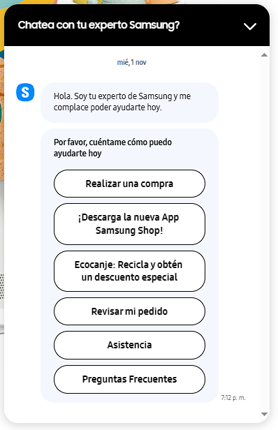 Un chatbot puede interactuar con los visitantes del sitio web y recopilar información relevante para convertirlos en leads potenciales. Un ejemplo de ello es Samsung que usa en su página web un bot para ofrecer ayuda a los usuarios a cambio de un correo electrónico. Esto es conveniente para construir una relación a largo plazo.