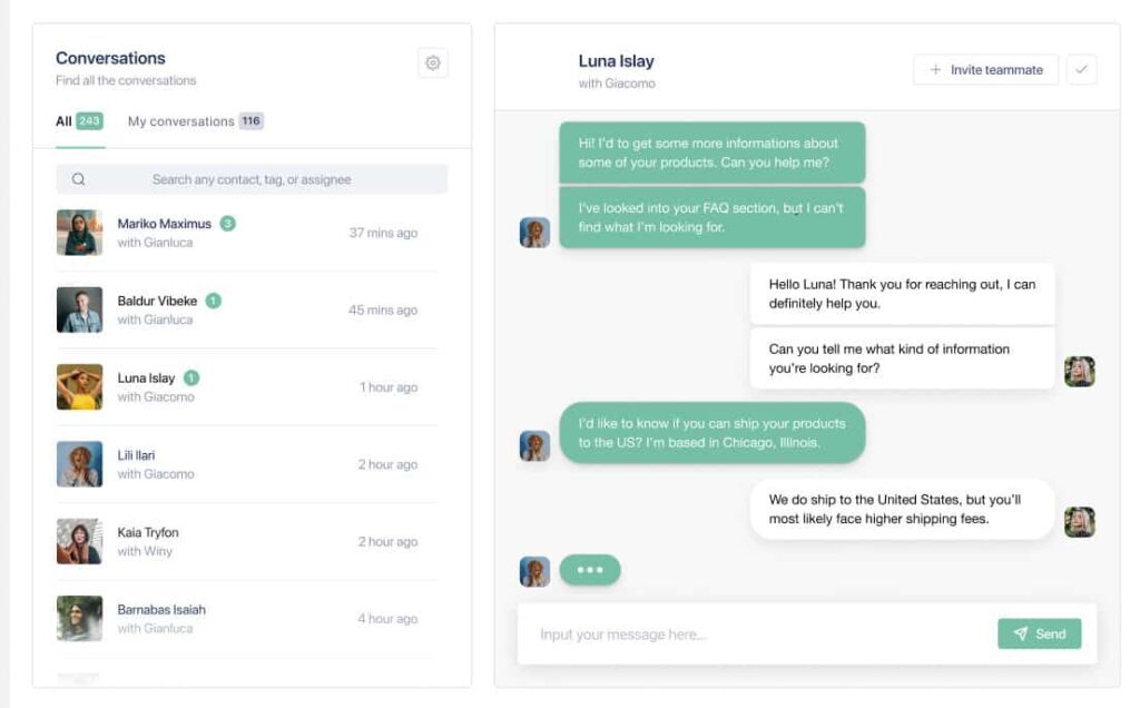 Asimismo, la gestión multi-agente de Ticker es otra funcionalidad clave en operaciones de soporte técnico. Ya sea que se necesiten pocos o muchos agentes, Ticker canaliza todas las conversaciones y las transfiere según los procesos de atención específicos de cada empresa.