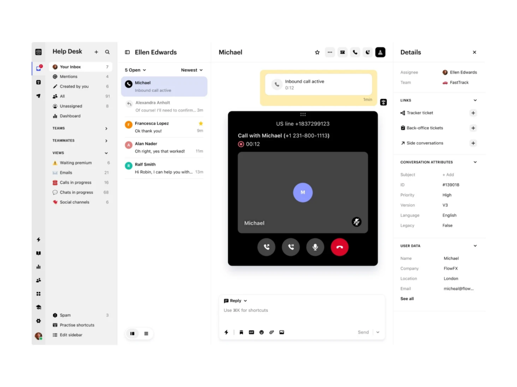 La plataforma se integra fácilmente con soluciones CRM como Salesforce o HubSpot, así como con otras herramientas empresariales, lo que garantiza un flujo de trabajo coherente y sin interrupciones. Esto significa que tus agentes tendrán acceso a toda la información relevante de los clientes desde un solo lugar, lo que facilita una atención más personalizada y eficaz.
